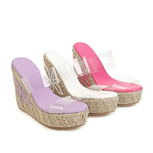 VOKLIN Women's Fashion Clear Espadrilles Wedges Sandals Open Toe Slip On Platform High Heels Dress Sandal