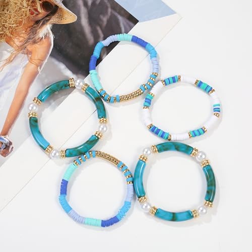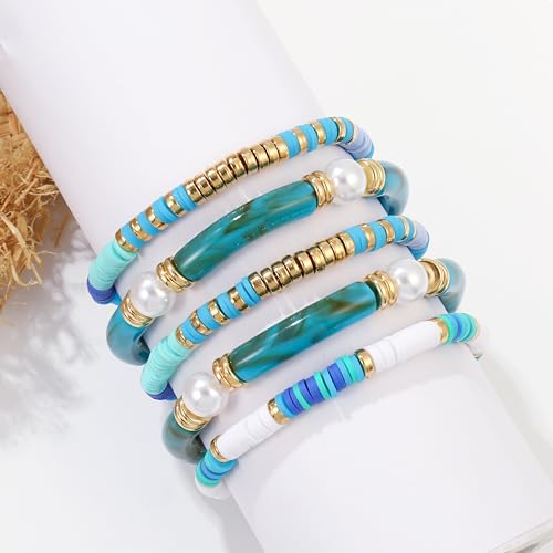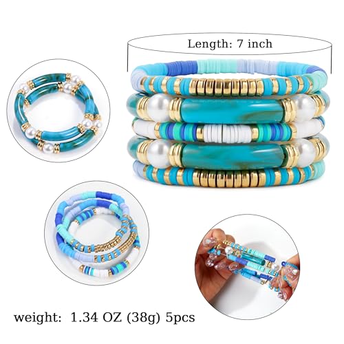 More information about Elegance 11 designs colorful bracelets for women Surfer Thick Tube Heishi Summer Beach Beaded Stackable Boho Stretch Bracelets
