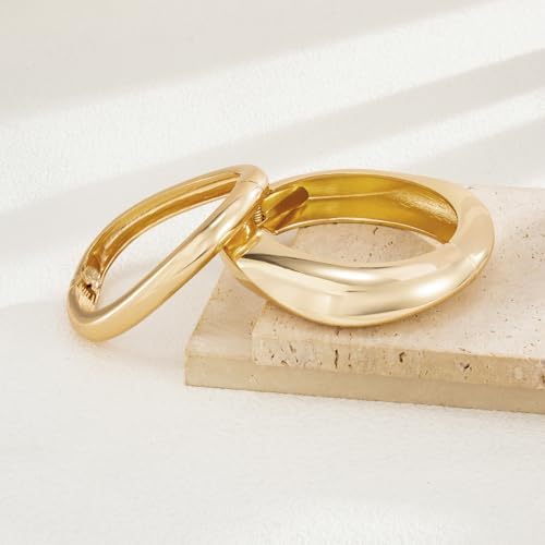 • Stackable Bangle Bracelet: Stacked or solo, this chic gold bangle for women makes a contemporary addition to any look. Inner diameter: 2.36in,2.3in,this cuff bracelet is flexible and adjustable It gently hugs the wrist, making it flawless for all-day wear