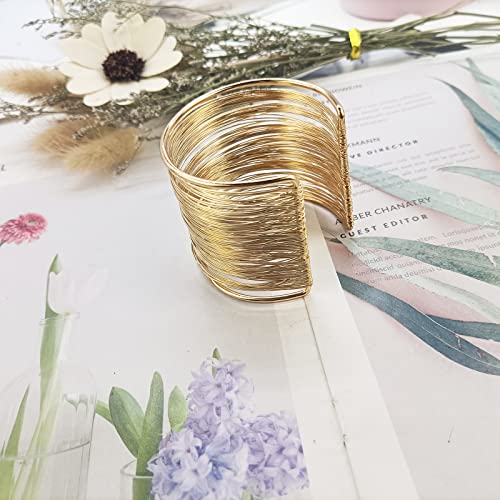 More information about CASDAN 1PCS Cuff Bangle Bracelet for Women Open Wide Wire Bracelets Gold Wrist Cuff Wrap Bracelet