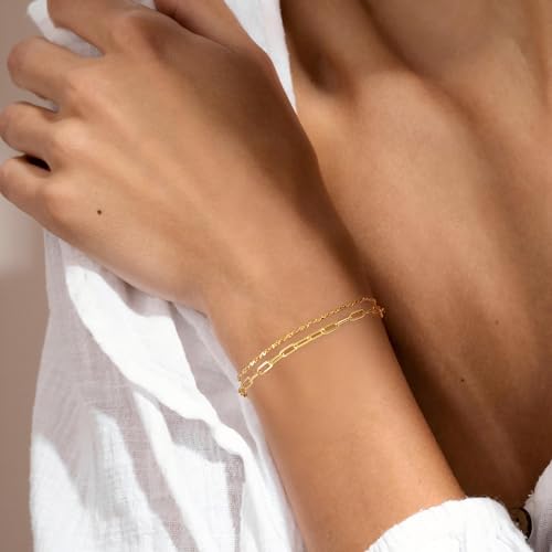 Gold Bracelet for Women 14K Gold Bracelets for Women Paperclip Bracelets for Womens Double-Layered Design for Everyday Wear Layered Bracelet for Womens