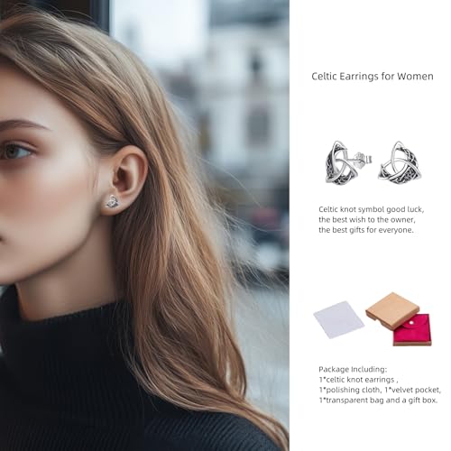 • remarkable Material - Celtic earrings are made of 100% 925 sterling silver hypoallergenic material and nickel free and no cadmium, sterling silver stud earrings are friendly to sensitive ears and will not cause ears irritations and rashes