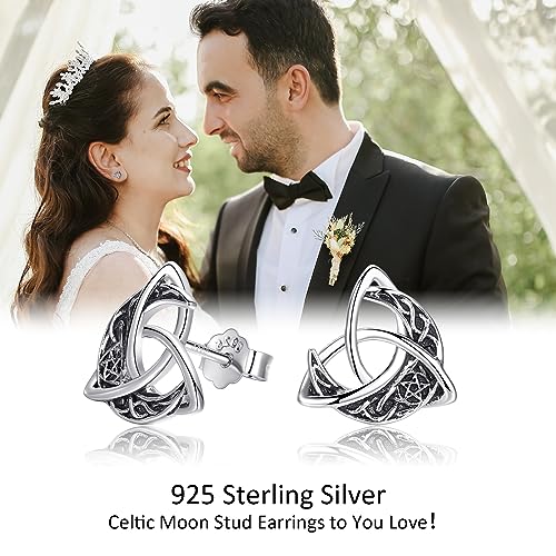 trending ! Celtic Stud Earrings 925 Sterling Silver Crescent Moon Celtic Knot Triangle Vintage Stud Earrings for Women Hypoallergenic Celtic Irish Jewelry Gift