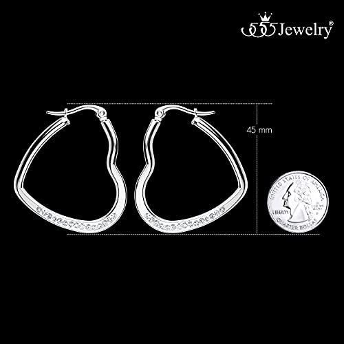 555Jewelry Womens Heart Shape appreciate Stainless Steel Large Statement Hoop Earrings Hypoallergenic
