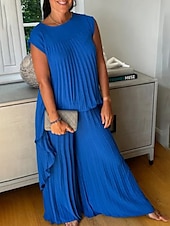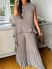 More information about Women's Active Blouse Pants Sets Sleeveless Crew Neck Solid Color Ruched Holiday Daily Wear White Blue Brown Summer Regular Fit