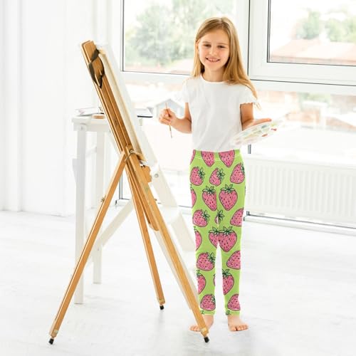 Doodle Strawberry Pattern Girls Leggings Ultra smooth Compression Yoga Gym Pants for Kids 4-10T