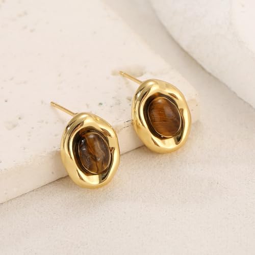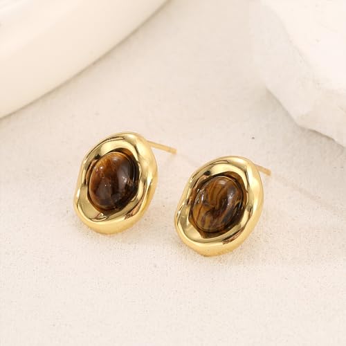More information about Chunky Gold Stud Earrings for Women Trendy Vintage Brown Geometric Statement Earrings Jewelry