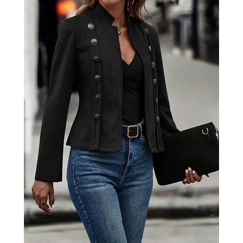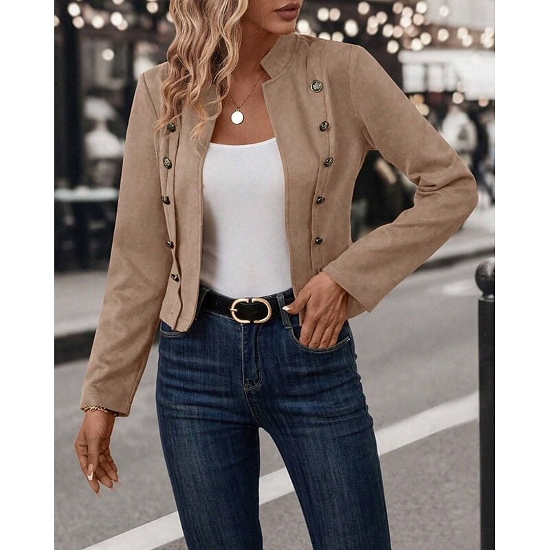 Why Choose Women's Winter Jacket cozy Patchwork Buttons Elegant Vintage Fashion OL Style Plain School Outdoor Vacation Home Double Breasted Short Stand Collar Regular Fit Long Sleeve Outerwear Dark Khaki Light?