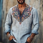 Highlights - Embrace the spring and summer seasons with this new-age vintage-inspired men's shirt - Perfect for a casual vacation look or Bohemian style outing - Enjoy the comfort of long sleeves and a V-neck neckline - Effortlessly blend fashion and functionality with this versatile piece