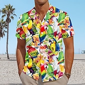 trending ! Men's Leaf Parrot Beach Shirt Aloha Shirt Short Sleeve Hawaiian Vacation Summer Spring Cuban Collar Button Up Green