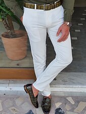 Highlights [Fabric] : Crafted from 100% high-quality cotton, these men's chinos provide exceptional comfort and breathability, ideal for keeping you cool during the warmer spring and summer months. [Fit] : The chinos offer a regular fit with a straight cut and mid-rise waistline, providing both a comfortable and flattering silhouette that suits a variety of body types. [Design Highlights] : These trousers feature vintage design elements such as a clean plain pattern, functional pockets, and a well-defined waistband equipped with belt loops. The zip fly closure ensures a secure fit, and while the belt is not included, these chinos pair seamlessly with a range of accessories. [Occasions] : Perfect for daily wear, going out, or outdoor activities, these chinos are versatile enough for casual and fashion-forward ensembles. They can be effortlessly styled with various tops and footwear for a polished look. [Size Range] : Available in an array of colors including White, Black, Dark Blue, Grey, and Khaki, these chinos come in sizes S, M, L, XL, 2XL, and 3XL, catering to a broad range of sizes and preferences. Perfect for everyday use. superior materials and excellent craftsmanship ensure long-lasting durability.