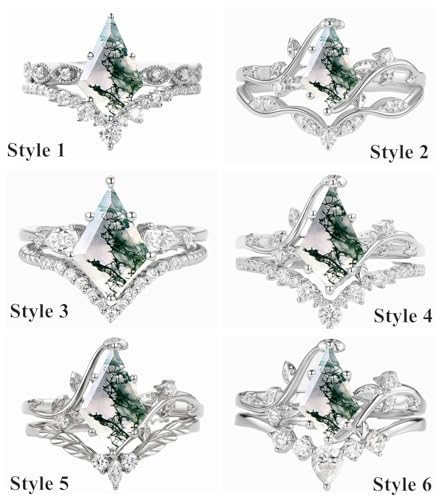Ring size: 4-12Material: MetalMetal type: White GoldGem type: Natural moss agateItem type name: Wedding Ring Sets【Design】- 2-piece bridal set with an engagement ring and a stackable ring.The pattern of each natural moss agate is different, representing exceptional love. Natural moss agate represents that love is entwined for a lifetime like water plants in the river, and will never leave, until death. These ring set can be worn individually or in sets to meet the needs of different occasions.【About The Ring】-Metal type: 925 Sterling Silver/10K/14K/18K gold(in real gold, not just a covering). Stone type: Natural moss agate & Moissanite(Center stone weight: 1 Carat moss agate ; Side stone weight: Total 0.5 carat Moissanite). Ring color: White gold/Yellow gold/Rose gold. Ring size(US):4-12.【Engraving text】- Engrave the text you want on the inner wall of the ring, such as name, date, etc., to give the ring a more unique meaning. Customize an exclusive personalized ring to represent exclusive love. Use a delicate ring to touch a woman's heart. It is not only suitable as an engagement ring, but also as a wedding ring, anniversary ring, promise ring, etc.【superior 】- Our rings are lead free & nickel free & anti-allergy, comfortable to wear, suitable for every women. Each ring of Blocaci has been uniquely designed by the designer and made with exquisite craftsmanship.【Customer Service】- Each product undergoes strict inspection. If you have any questions, we will spare no effort to solve them for you! Perfect for everyday use. High quality materials and excellent craftsmanship ensure long-lasting durability.