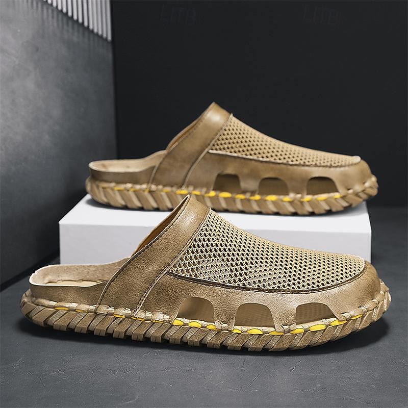 Men's Sandals Slippers Fashion Sandals Handmade Shoes Comfort Shoes Walking Casual Daily Vacation Beach PU Breathable pleasant Slip Resistant Black Brown Khaki Summer Fall