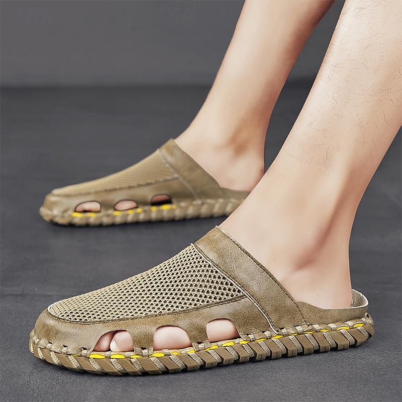 More information about Men's Sandals Slippers Fashion Sandals Handmade Shoes Comfort Shoes Walking Casual Daily Vacation Beach PU Breathable relaxing Slip Resistant Black Brown Khaki Summer Fall