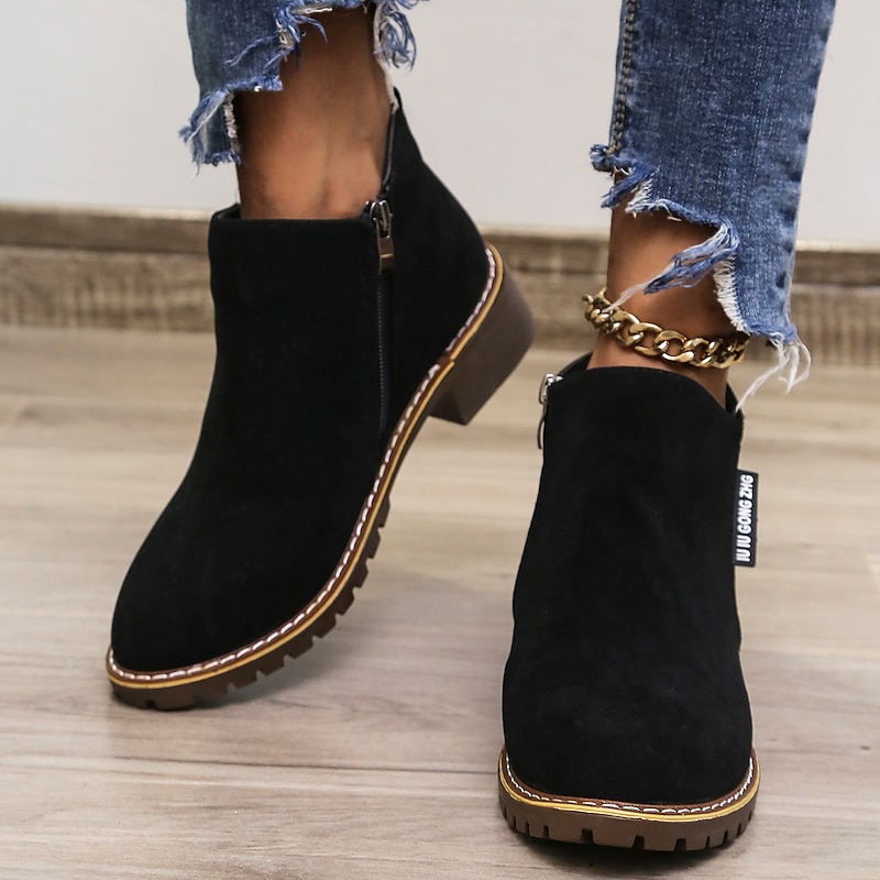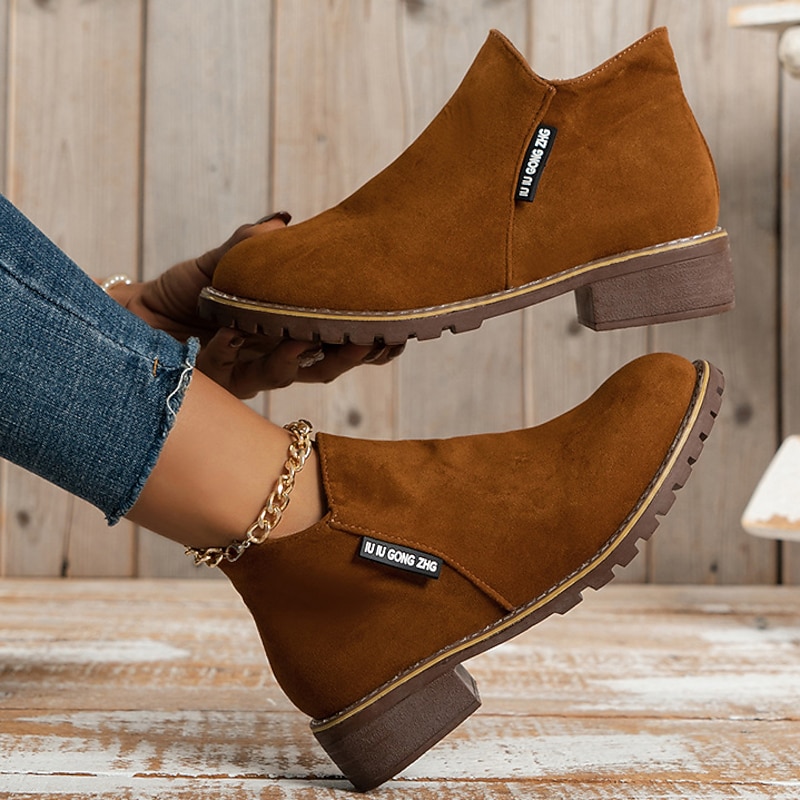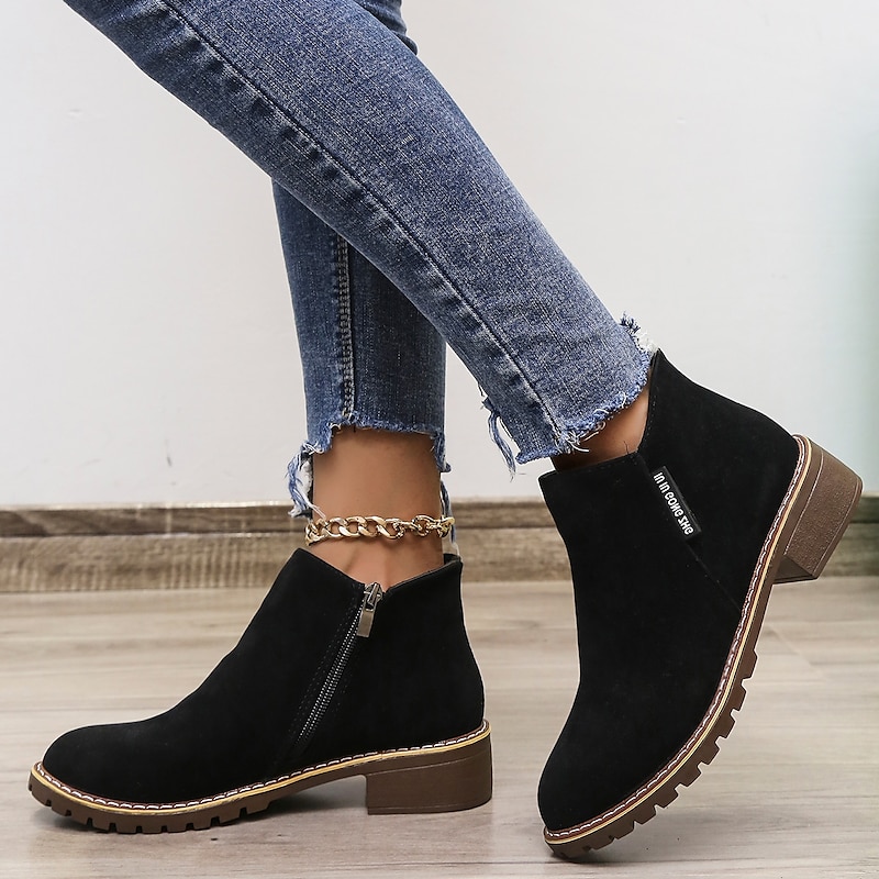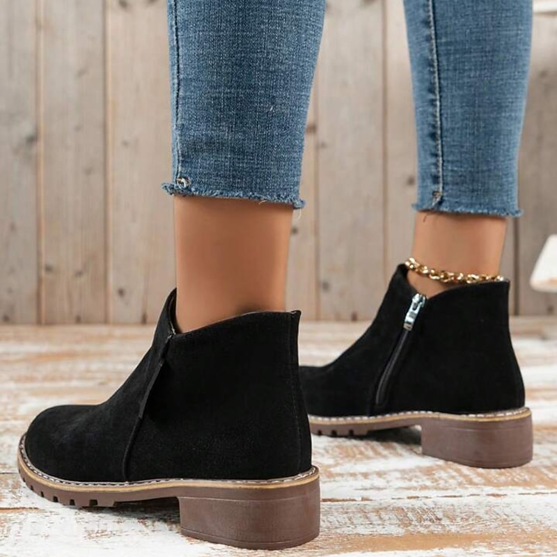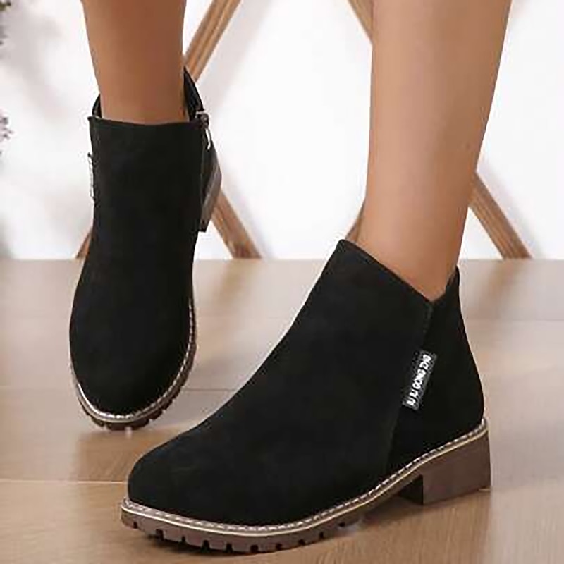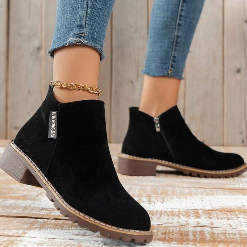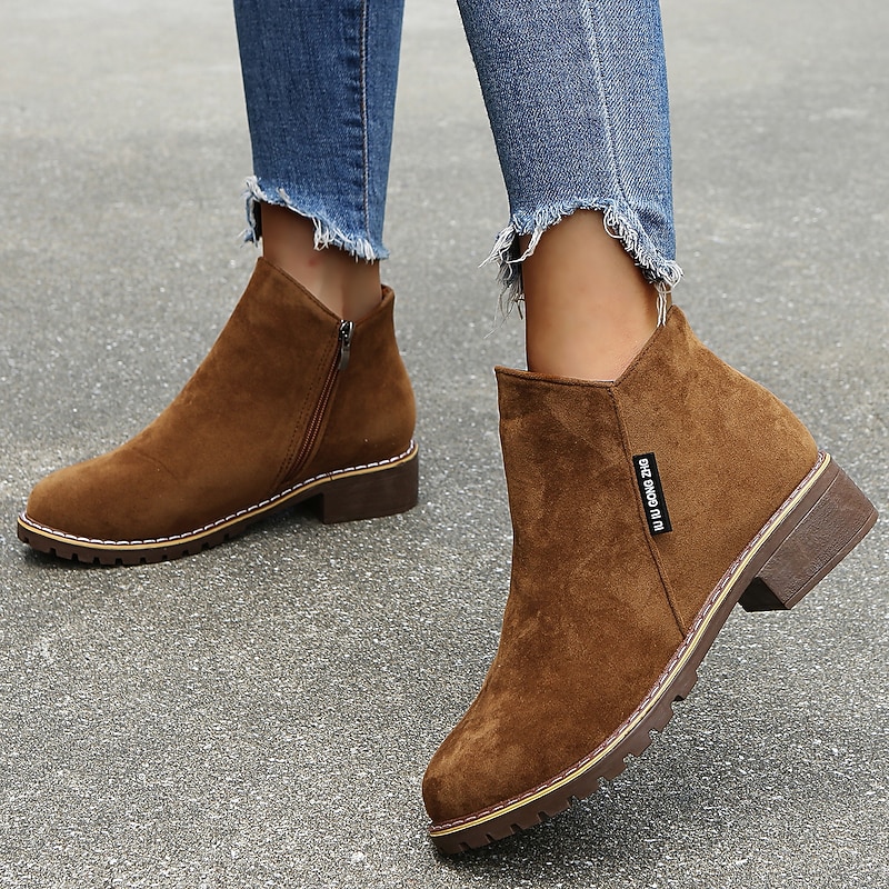 Highlights [Fabric] : Made from premium PU material, these women's ankle boots boast a soft, suede-like texture that provides both comfort and a contemporary look. The high-quality rubber sole ensures durability and provides excellent traction, making them perfect for various weather conditions. [Fit] : These boots feature a classic low block heel design, offering stable support for all-day comfort. They are crafted to accommodate various foot sizes, starting from US size 5.5 to US size 9.5-10, ensuring a perfect fit for everyone. [Design Highlights] : The boots come with a convenient side zipper, allowing for easy on-and-off access. Their sleek design, coupled with a modern round toe, adds a touch of vintage charm, making them a versatile choice for both casual and semi-formal occasions. [Occasions] : Ideal for daily wear, work, or outdoor activities during the fall and winter seasons. These boots are perfect for any casual outing or when you need a fashionable yet functional footwear option. [Size Range] : Available in sizes ranging from US 5.5 to US 9.5-10, these boots provide a comfortable fit for a wide range of potential wearers. Perfect for everyday use. superior materials and excellent craftsmanship ensure long-lasting durability.