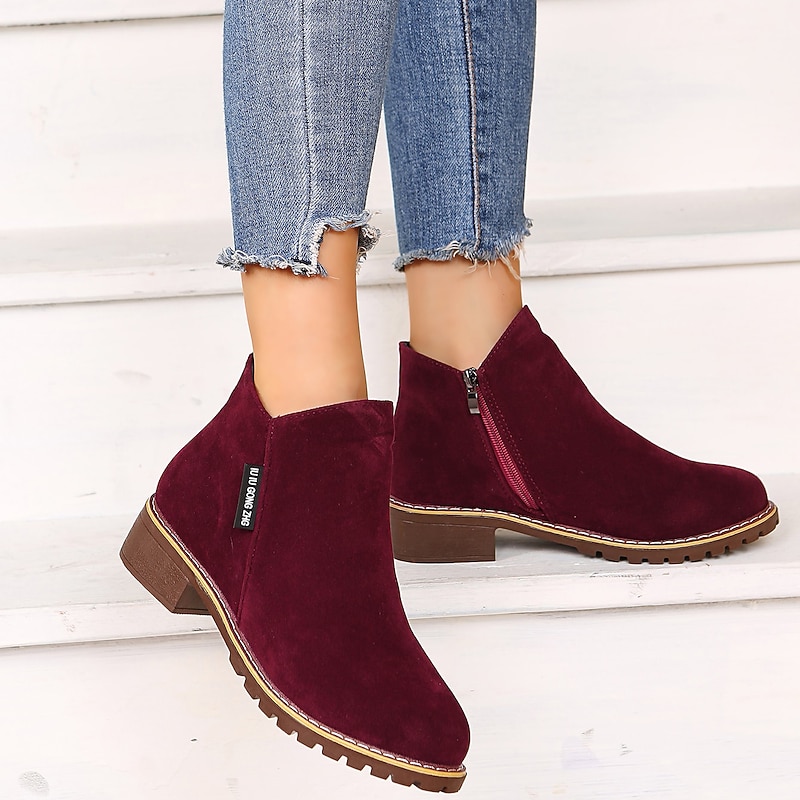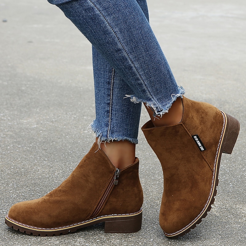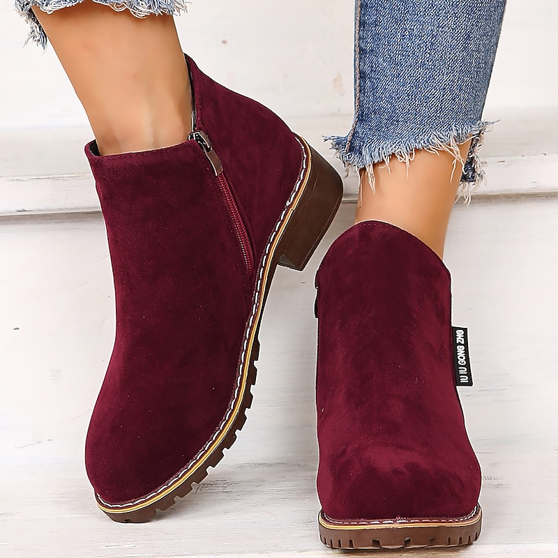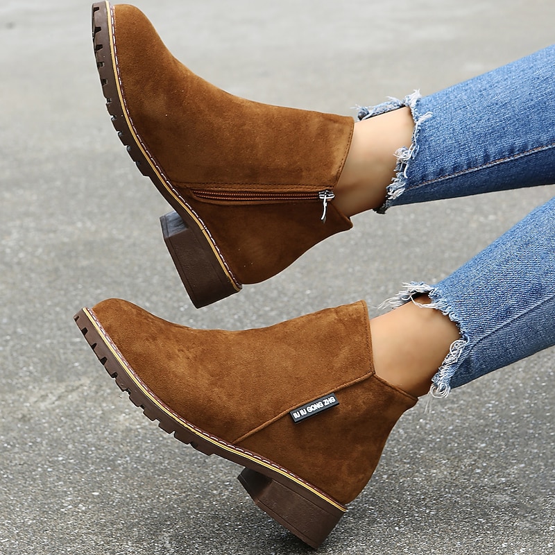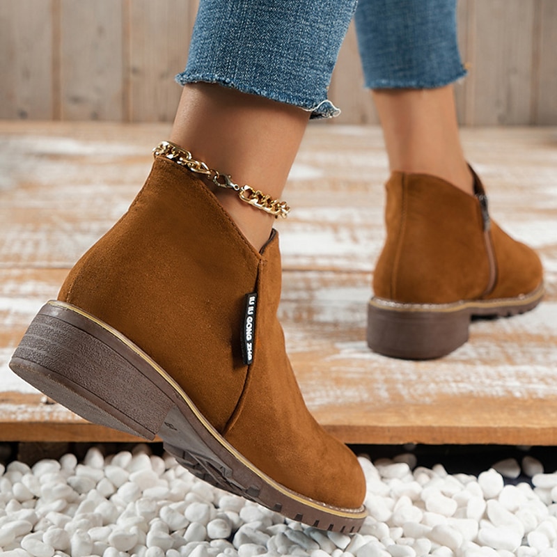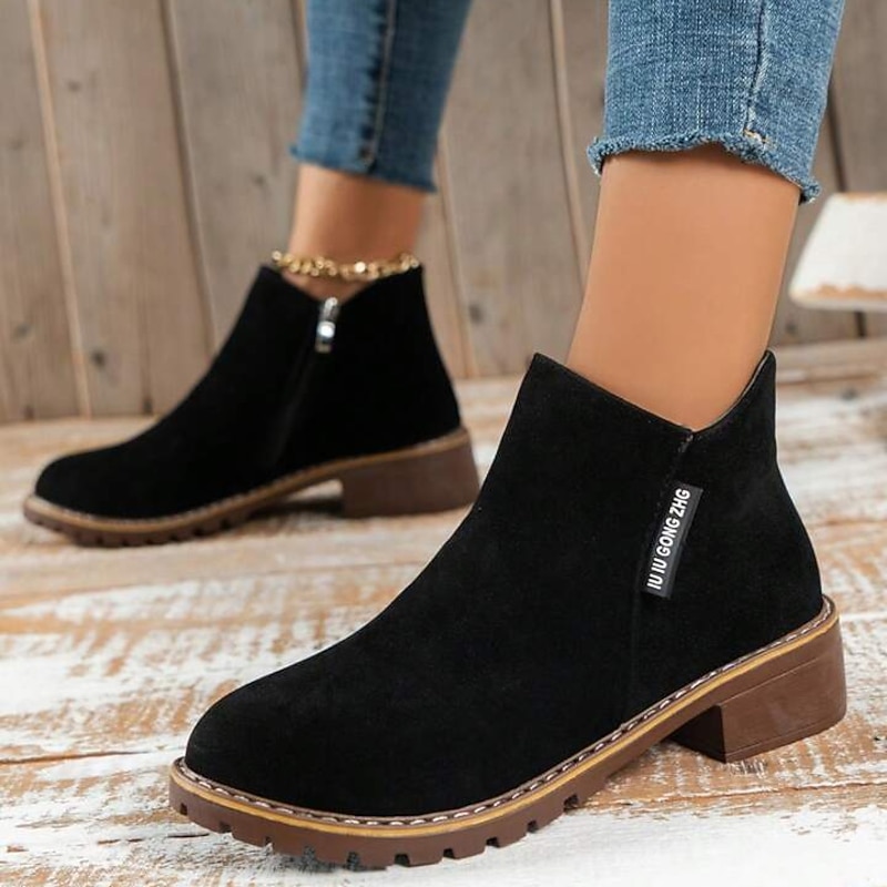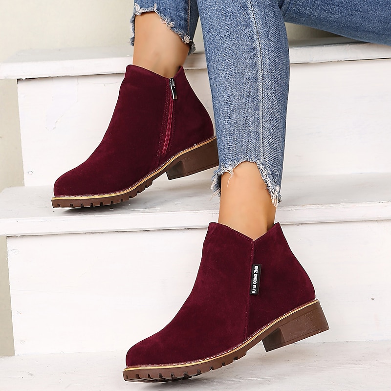 Highlights [Fabric] : Made from premium PU material, these women's ankle boots boast a soft, suede-like texture that provides both comfort and a contemporary look. The high-quality rubber sole ensures durability and provides excellent traction, making them perfect for various weather conditions. [Fit] : These boots feature a classic low block heel design, offering stable support for all-day comfort. They are crafted to accommodate various foot sizes, starting from US size 5.5 to US size 9.5-10, ensuring a perfect fit for everyone. [Design Highlights] : The boots come with a convenient side zipper, allowing for easy on-and-off access. Their sleek design, coupled with a modern round toe, adds a touch of vintage charm, making them a versatile choice for both casual and semi-formal occasions. [Occasions] : Ideal for daily wear, work, or outdoor activities during the fall and winter seasons. These boots are perfect for any casual outing or when you need a fashionable yet functional footwear option. [Size Range] : Available in sizes ranging from US 5.5 to US 9.5-10, these boots provide a comfortable fit for a wide range of potential wearers. Perfect for everyday use. superior materials and excellent craftsmanship ensure long-lasting durability.