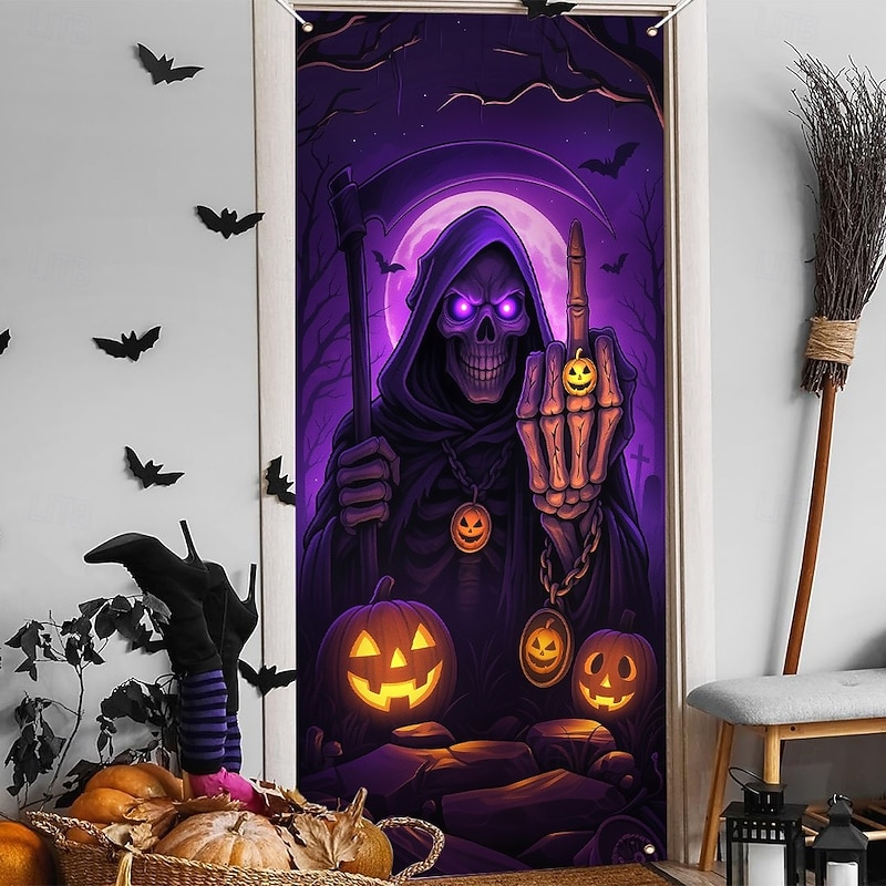 $18.99 - Halloween Door Cover Neon Pumpkin Head Grim Reaper Banner, Glowing Blacklight Entrance Decoration for Outdoor & Indoor 2025 Halloween Bedroom, Living Room, Bathroom 2025. Shop for cheap Halloween Door Covers online? Buy at lightinthebox.com on sale today!