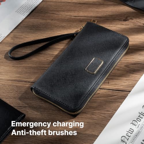 trending ! RFID Blocking Wallet for Women, Slim Wallet for Women with Wireless Charging & Built-in Power Bank,Travel Wallet – A Brilliant Gift Choice, Vegan Leather Clutch Wallet with Zip, Hand Strap