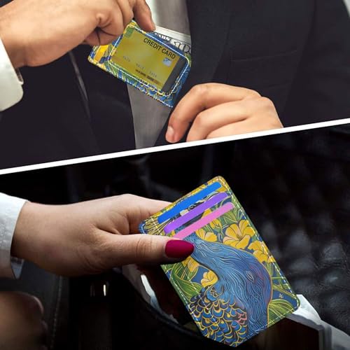 Brand: YoogainColor: Blue peacockMaterial: LeatherProduct Dimensions: 0.3D x 3.1W x 4.3HItem Weight: 36 GramsUltra-Slim Design: 3.1 x 4.3 x 0.3 when empty. Our slim wallet for women and men fits perfectly in your front or back pocketPlenty of Room: Compact wallet slim designed with1 photo slot, 1 change slot, 2 hidden compartments, and 3 card slots, perfect to hold your credit card, ID card, shopping cards,bills, folded cash and receiptsPrivacy Protection: womens wallets slim with advanced RFID blocking technology, can perfectly block unwanted RFID readers from obtaining sensitive private information. Always protects your credit card, ID information from unauthorized scanning, Fashionable, Distinct: Constructed from leather, this men's wallet slim combines durability with a smooth texture and also features a variety of cute and engaging patterns, offering an aesthetic blend of beauty, art, and personalized style.Compact & Lightweight for Everyday Use: Designed to accommodate everyday use wallet, our wallets are slim and lightweight, allowing you to carry it effortlessly in your bags or suite without adding bulk. Perfect for everyday use. High quality materials and excellent craftsmanship ensure long-lasting durability.