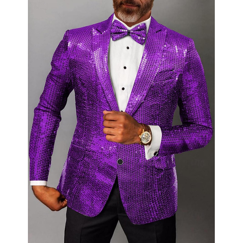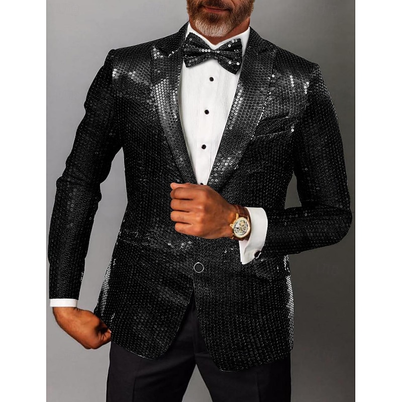 More information about Men's Blazer Jacket Party Sparkle Sequin Solid Colored Black Silver Pink Tailored Fit Single Breasted Two-buttons