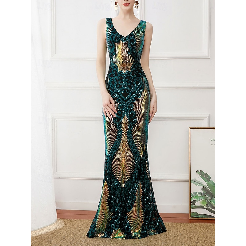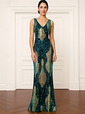 More information about Sheath / Column Mother of the Bride Dress Elegant Vintage Sparkle & Shine V Neck Floor Length Sequined Polyester Sleeveless with Beading