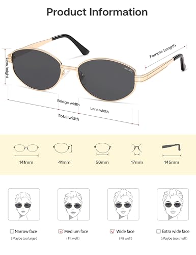 Care instructions: Clean gently with a microfiber cloth. Store in the provided case when not in use. Avoid exposure to extreme temperatures or direct sunlight when not being worn.Origin: ImportedTRENDY OVAL ROUND STYLE: These retro trendy oval sunglasses are keeping up closely with the latest fashion trend. These fashion round style can match with various facial shapes.PRODUCT MATERIALS: These trendy oval polarized sunglasses are made of solid metal frames, UV400 TAC polarized lenses, mighty metal hinges and skin-friendly silicone nose pads.HD UV400 TAC POLARIZED LENSES: These HD UV400 TAC polarized lenses can effectively filter out harmful UVA and UVB rays.PRODUCT DIMENSION: Lens Width: 56mm, Lens Height: 41mm, Temple Length: 145mm, Nose Bridge: 17mm, Total Frame Width: 141mm.PRODUCT PACKAGING: Sunglasses*1, microfiber pouch*1, microfiber glasses cleaning cloth*1, glasses box*1. Perfect for everyday use. superior materials and excellent craftsmanship ensure long-lasting durability.