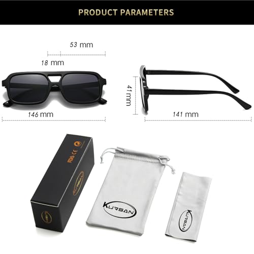 Origin: ImportedFrame material: CompositePolarization type: Non-polarizedLens width: 53 MillimetersRetro 70s Aviator Sunglasses ▶ The 70s vintage square frame leopard sunglasses, featuring an contemporary bold color matching with a classic double bridge square designUV400 Protection Lens ▶ Kursan tortoise aviator sunglasses provides UV400 Protection,blocks 99.99% Harmful UV Rays.It's a perfect companion for driving,traveling,parties,or any outdoor activitiesUltralight Plastic Frame ▶ Screw tightness is moderate, temples are easy to open and close;one-piece nose pad fit more to the nose.All the details ensuring you a long time usingFashion Eyewear Shades ▶ Vintage square aviator sunglasses are suitable for both women and men for any face will bring you a timeless look and will be great choices for high-end accessories and daily clothing. It is great for all kinds of parties, beach vacation, retro themed costume, music festivals, hippie costumeProduct Size ▶ Lens Width: 53MM(2.09''), Lens Height: 41mm(1.61''), Nose Bridge: 18MM(0.71''), Frame Length: 146MM(5.75''), Temple Length: 141MM(5.55''), Weight: 24g Perfect for everyday use. superior materials and excellent craftsmanship ensure long-lasting durability.