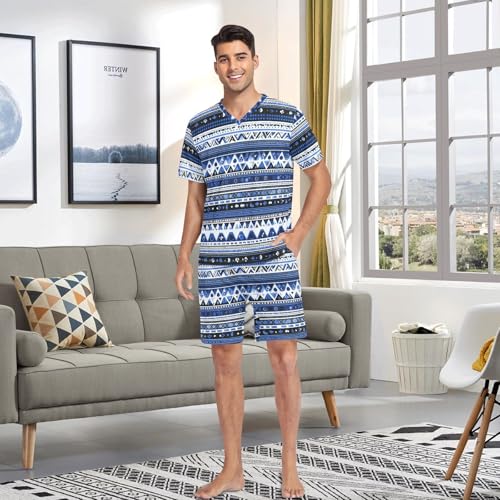 More information about Blue Aztec Men’s Pajama Sets 2 Piece Short Sleeve Sleepwear with Printed Design