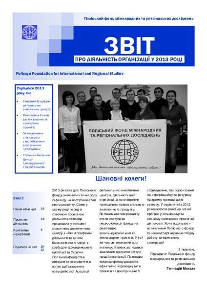 2013 has become a landmark for the next stage of its development for the Polissya Fund. It was this year that, along with current project activity, the team worked in the format of a classical analytical center with a clear profile of activity and a clear vision of its place in the development of civil society of Ukraine. The Polissya Fund became the author and implementation of the idea of creating an All -Ukrainian Association.