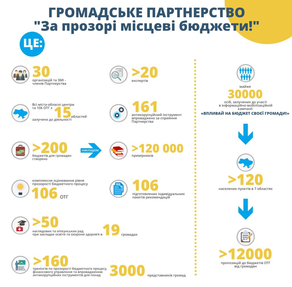• Місія нашого Партнерства – створення умов для ефективного формування та використання місцевих бюджетів в інтересах громад шляхом підвищення доброчесності, прозорості бюджетного процесу та забезпечення участі громадян у ньому. Якщо говорити простою мовою, то ми прагнемо, щоб гроші громади працювали на саму громаду, і громада від того ставала заможнішою та успішнішою. Для цього ми допомагаємо громадам впроваджувати різні інструменти, які підвищують доброчесність та прозорість бюджетного процесу. Разом з цим, ми розуміємо, що це завдання не може бути досягнуто без активного залучення самих членів громади, тому стараємось як підвищувати обізнаність громадян в бюджетному процесі, так і створювати механізми й практики їх залучення до участі у ньому. В результаті отримуємо не тільки економічний, а й позитивний політичний ефект у вигляді підвищення рівня довіри до влади.