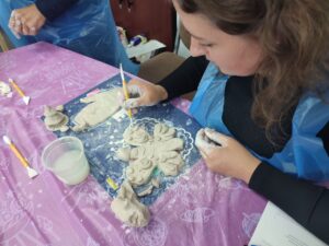 На заключному етапі знайомились та опановували різні техніки арт терапії. Наприклад, глинотерапія допомагає зняти стрес, напругу, тривогу. Використання інтуїтивного малювання дозволяє розвивати найважливіші риси особистості, позитивно впливає на емоційний інтелект, підвищення самооцінки, врівноваженість, зорову пам’ять. Тканинна арт терапія є інноваційним напрямком, завдяки якому людина самостійно здатна приходити до розуміння способів вирішення проблемних ситуацій у власному житті.