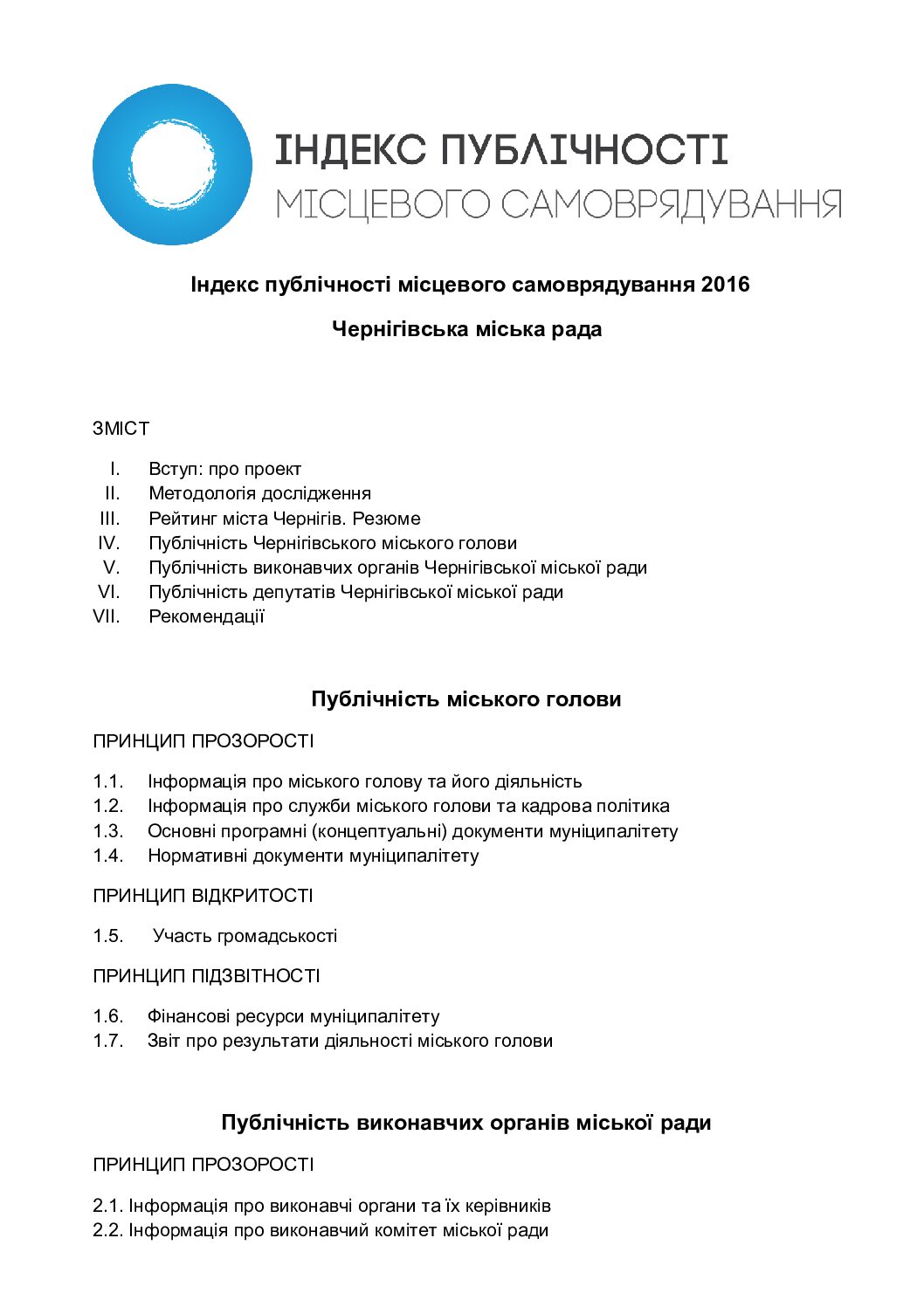 Індекс публічності місцевого самоврядування 2016. Чернігів.