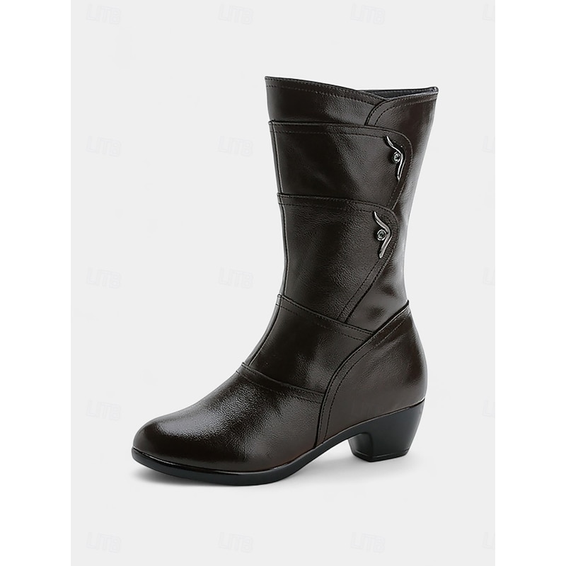 This Women's Brown Mid-Calf Boots with Low Block Heels and Side Zipper, plush Leather Casual Fashion Shoes for Daily Wear, Work & Fall Winter Outfits combines elegant design with practical functionality. Every detail has been carefully considered to ensure you get the best possible experience. The excellent construction means this product will serve you well for years to come.